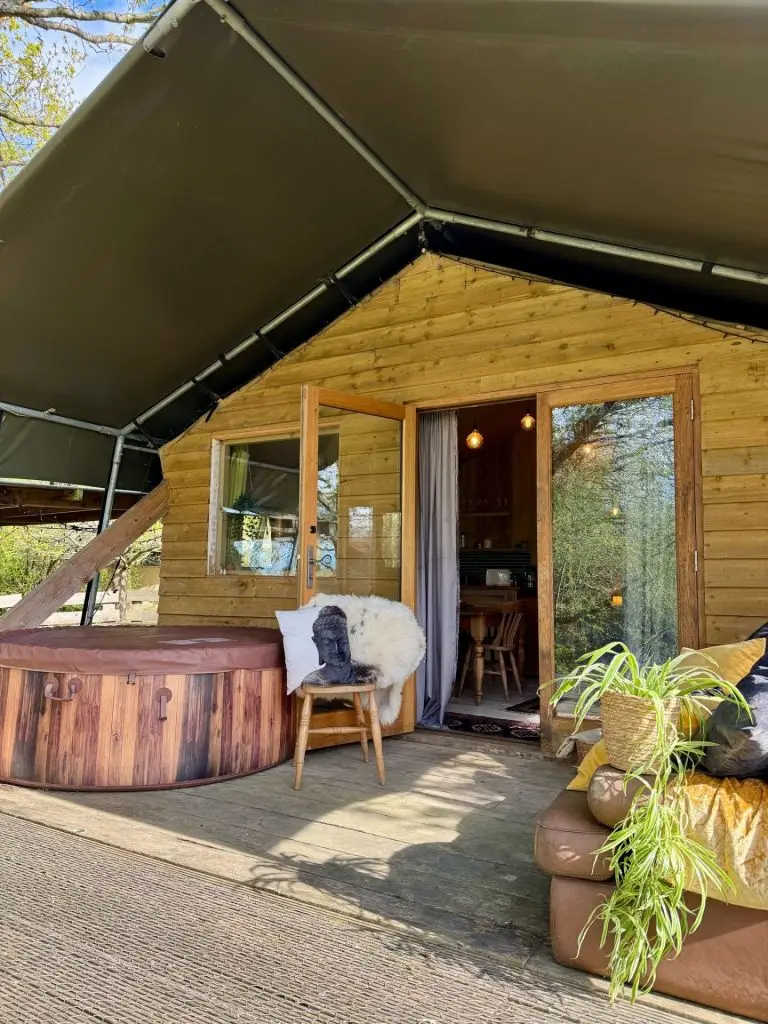 Bloomsburys is delighted to offer our newly refurbished Safari Lodge,  offering  luxury and comfort for those seeking a self catering Glamping lodge in Kent. Redesigned from being a simple tent, this lodge combines tranquility with a sense of adventure, ensuring a memorable and relaxing stay.
