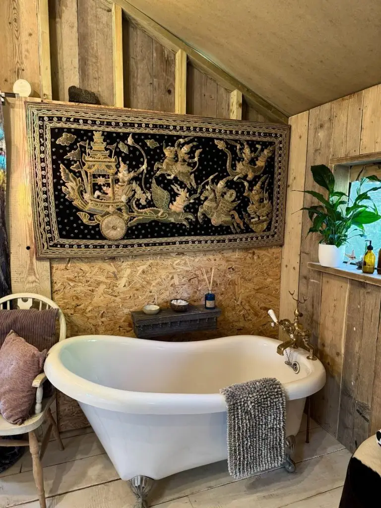 We pride ourselves on sustainability and have upcycled materials wherever possible in the design of this lodge. Old scaffold boards, repurposed fittings, and furniture contribute to the unique charm of the Safari Lodge. The addition of a WC with the slipper bath enhances the convenience and luxury of your stay. Stay connected with strong site-wide Wi-Fi, though we hope you will be so captivated by the pond and spectacular views that you’ll choose to unplug and relax.